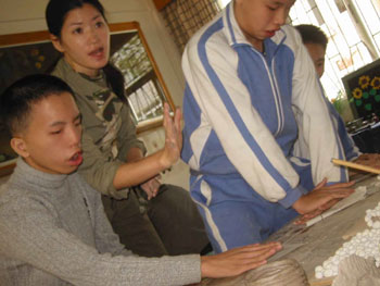深圳元平特教學(xué)校的陳佳老師,畢業(yè)于首都師大,從事特教已經(jīng)6年多。她學(xué)生在去年的全國(guó)大賽上獲得銀牌和銅牌。這讓她非常高興。她說(shuō);:“特教,就是要求老師放平心態(tài)!(文/圖太陽(yáng)星城愛(ài)心之旅特派記者大漠)