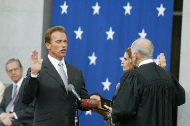 阿諾·施瓦辛格于美國當(dāng)?shù)貢r間11月17日宣誓就任加利福尼亞州第38任州長。施瓦辛格宣誓就職儀式吸引了大約740名記者參加,規(guī)?氨让绹偨y(tǒng)就職儀式,世界各地數(shù)百萬觀眾觀看了儀式的現(xiàn)場直播。
