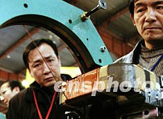 ,十一月十八日,“2003北京國際電力電工及電線電纜展覽會”暨“2003北京國際變壓器展覽會”在北京開幕。北京萬德特機電技術研究所研制的“通用型數(shù)控環(huán)形繞線機”展示變壓器產(chǎn)品快速纏繞技能,吸引了眾多國內變壓器廠家的技術人員視線。中新社記者:鄒憲