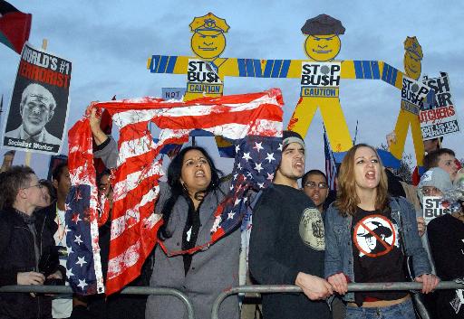 據(jù)英國反戰(zhàn)組織"停戰(zhàn)聯(lián)盟"說,周四下午將有10萬人上街示威游行,而其中也不乏久住英國的美國人。一位參加游行的美國人坦言,很多示威者不一定反美,但一定反布什。