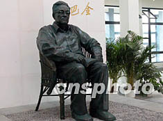 報道說,銅像高達2.5米,顯得莊重而又大氣。塑像——戴著眼鏡的巴金坐在藤椅上,平視前方,膝蓋上放著一本還未看完的書,整個造型栩栩如生。