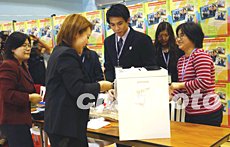 選舉管理委員會(huì)的工作人員22日在投票站內(nèi)做最后準(zhǔn)備,確保選舉投票順利進(jìn)行。中新社記者:洪少葵