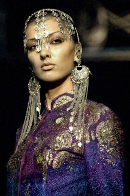 11月22日在印度的東北部港口城市加爾各答,印度模特在一場(chǎng)主題為'Lakme Stylefile Fall Winter Show 2003'的時(shí)裝展示上,展示了9位印度頂級(jí)設(shè)計(jì)師的最新作品。