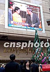 香港區(qū)議會選舉24日凌晨點(diǎn)票結(jié)束,圖為香港市民聚集屏幕前關(guān)注投票選舉結(jié)果,在是次區(qū)選中立法會議員何秀蘭以64票微弱優(yōu)勢險勝立法會議員民建聯(lián)副主席葉國謙。中新社記者:洪少葵
