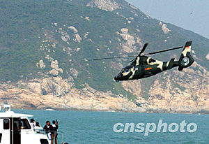 今天的演習(xí)由民航處籌辦,于南丫島東澳灣舉行,百多人參加。演習(xí)分三部分進(jìn)行,包括由政府飛行服務(wù)隊(duì)和民眾安全服務(wù)處聯(lián)合在東澳灣山邊進(jìn)行拯救,并由政府飛行服務(wù)隊(duì)派出超級(jí)美洲豹AS332L2型直升機(jī)示范在甲板吊救模擬傷者,消防處的潛水隊(duì)伍隨即示范海上搜救。最后,駐港部隊(duì)派出一架“直九”直升機(jī)進(jìn)行空中搜索示范,結(jié)束整項(xiàng)短程演習(xí)。
