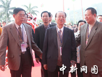 臺灣知名人士林洋港先生(中),臺商、天福集團總裁李瑞河先生(左)等出席第五屆海峽兩岸(福建漳州)花卉博覽會開幕儀式。蔡文原攝