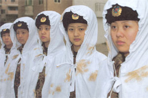 這次配發(fā)的新型防寒服包括冬作訓服、防寒羽絨大衣、薄型棉衣褲、防寒面罩、外套靴等15個品種,樣式有派克式、茄克式、雞心領式、拉鏈式等,功能配套,種類齊全。據總后勤部軍需裝備研究所所長周國泰介紹,新型防寒服大量采用新技術、新材料、新工藝,使用的防寒搖粒絨等保暖材料無毒無害,既能防止冷風侵入,又不影響排汗,其厚度比原冬季服裝減少3厘米,單兵負荷減少3千克,衛(wèi)生性和保暖均衡性顯著提高,體現了“輕、薄、暖”的設計思想。經西藏地區(qū)海拔4000米以上的數十個連隊試穿,官兵們普遍表示滿意。