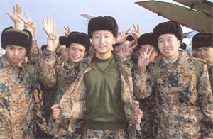 中新網11月29日電 解放軍報報道說,西藏軍區(qū)部隊從今年開始全部換發(fā)新型高原防寒服裝。28日上午,首批進藏的3000余名新兵穿著新型高原防寒服,精神抖擻地登上飛機,奔赴世界屋脊。