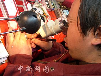 圖:金陵民間微雕工藝能在一粒米上雕刻六首唐詩(shī)