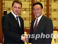 中新社北京十二月四日電(記者張朔)中國全國人大常委會委員長吳邦國今天下午在人民大會堂會見首次訪華的斯洛文尼亞總理羅普時說,中國新一屆中央領(lǐng)導集體高度重視發(fā)展與斯洛文尼亞的關(guān)系。