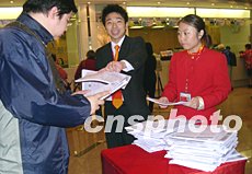 中國(guó)人壽保險(xiǎn)股份有限公司8日在香港公開(kāi)招股,預(yù)期最高集資額逾231億港元,是今年全球最大宗新股集資活動(dòng)。據(jù)悉,包括香港長(zhǎng)實(shí)、和黃等集團(tuán)已認(rèn)購(gòu)股份。圖為銀行向市民派發(fā)招股書。作者:譚達(dá)明
