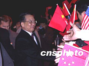 美國國務(wù)院禮賓司司長埃斯納特、安德魯空軍基地空軍準(zhǔn)將格雷、美國國務(wù)院助理國務(wù)卿凱利到機(jī)場迎接。二百多名當(dāng)?shù)厝A人華僑和大使館工作人員也到機(jī)場熱烈歡迎溫家寶總理。