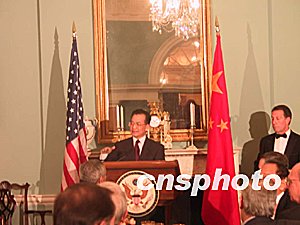 美國(guó)國(guó)務(wù)卿鮑威爾設(shè)宴款待中國(guó)國(guó)務(wù)院總理溫家寶。中新社記者 余東暉 攝