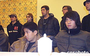 柯受良兒子柯友倫(右一)、柯有謙出席了本次新聞發(fā)布會。中新社記者:湯彥俊