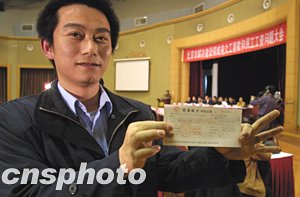 中新社北京十二月十二日電(記者于晶波)今天下午,在北京官方的組織下,該市四十一家建筑施工企業(yè)集中向外地進京勞務企業(yè)兌付民工勞務費十二點六億元(人民幣,下同)。北京市建委稱,明年一月十五日之前,二00三年民工被拖欠的工資將全部兌現完畢。