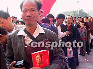 十二月十三日,數(shù)以千計的福建讀者一大早在福州市區(qū)一圖書城前排起長隊,等候偉人毛澤東嫡孫毛新宇為新書《爺爺毛澤東》簽名售書。今年十二月二十六日是毛澤東誕辰一百一十周年的日子。