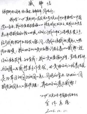 我們是“11·24”莫斯科人民友誼大學火災(zāi)事件中不幸遇難的中國留學生家屬,我們懷著極其悲痛的心情赴俄處理后事。在我們?yōu)槭ビH人而深感悲傷不振的時候,你們向我們伸出了溫暖關(guān)愛之手,給予我們精神和物質(zhì)的慰問,使我們信感祖國親人的熱情和溫暖。我們對你們的關(guān)懷和慰問表示衷心的感謝!祝你們生意興隆、事業(yè)有成!