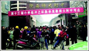 當(dāng)記者下午來到考點(diǎn)之一的陜師大附中,只見大門口擠滿應(yīng)試的學(xué)生和家長,長時(shí)間不愿離去。一位家長氣憤地問:“難道孩子手中的準(zhǔn)考證、校門口懸掛的橫幅,還有大紅印章都是假的?政府一會(huì)兒讓考,一會(huì)兒不讓考,這是咋回事?”許多學(xué)生和家長擁入校辦公室討說法,一位張姓主任說,學(xué)校只提供教室,考與不考都是尤廉那兒通知的。