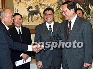 唐家璇在釣魚臺國賓館會見香港前高級公務(wù)員協(xié)會代表團。他在會見前回答香港記者有關(guān)香港政制發(fā)展問題時作以上表示。