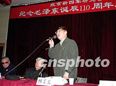 十二月十六日,北京新四軍研究會(huì)在京隆重舉行“紀(jì)念毛澤東誕辰一百一十周年座談會(huì)”,新四軍研究會(huì)會(huì)長張铚秀將軍(中),副會(huì)長魯冰將軍(左),副會(huì)長、中國人民對(duì)外友好協(xié)會(huì)會(huì)長陳昊蘇(右)與新四軍所屬各師分會(huì)代表近二百人共同緬懷了毛澤東領(lǐng)導(dǎo)人民驅(qū)逐日寇,建立新中國,開拓中華復(fù)興之路的豐功偉績。作者:徐曦弋