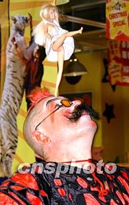 來自俄羅斯的莫斯科馬戲團(tuán)在香港進(jìn)行為期數(shù)月的演出活動(dòng),全新的馬戲節(jié)目為香港觀眾帶來歡樂、刺激的新感受。圖為馬戲團(tuán)小丑為賓客表演雜耍。中新社記者:錢興強(qiáng)