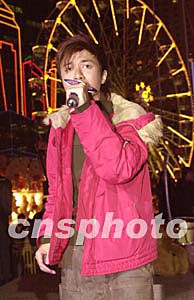 歌星古巨基12月22日在香港添馬艦廣場舉行之《環(huán)球嘉年華2003/4》出席「Neway 終極K Fun嘉年華」演唱會,為在場樂迷獻唱助慶。中新社記者:鄧慶樂