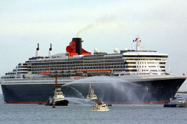 世界上最大的海上客輪“瑪麗女王二世”號(hào)22日正式下水,從法國(guó)圣納澤爾港駛向英國(guó)英格蘭南部港市南安普敦。