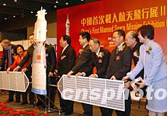 迎圣誕節(jié)之際,特備展覽“中國(guó)首次載人航天飛行展Ⅱ--給香港的禮物”十二月二十三日在香港科學(xué)館開(kāi)幕,其中最珍貴的展品包括楊利偉的工作訓(xùn)練服以及香港特區(qū)和珠江三角洲衛(wèi)星圖等。圖為展覽開(kāi)幕啟動(dòng)儀式。中新社記者:錢興強(qiáng)