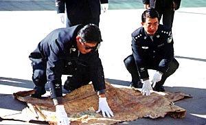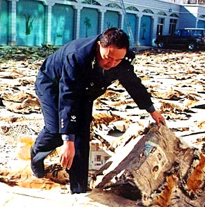 拉薩海關(guān)緝私局副局長(zhǎng)李建文撣撣身上的土告訴記者,10月10日他們將這批動(dòng)物皮張從查獲地點(diǎn)運(yùn)回拉薩海關(guān)時(shí),動(dòng)用了全部警力,花了3個(gè)小時(shí)才將皮張數(shù)量點(diǎn)清。他說,根據(jù)黑市上的價(jià)格,這批動(dòng)物皮張的總價(jià)值超過1000萬元。“當(dāng)然,由于孟加拉虎、金錢豹和水獺都是瀕危動(dòng)物,依照國(guó)家法律和國(guó)際公約都是明令禁止射殺、販賣的,所以它們的價(jià)值遠(yuǎn)非金錢可以衡量!崩罱ㄎ耐瑫r(shí)強(qiáng)調(diào)。