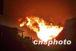 圖:重慶開(kāi)縣天然氣井噴事故24日晚井噴現(xiàn)場(chǎng)