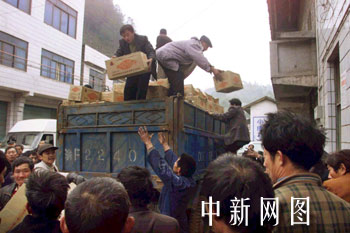 救災(zāi)物資送到現(xiàn)場(chǎng)。重慶晚報(bào)供圖
