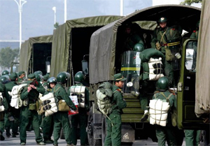 圖:武警開(kāi)赴“12·2 3”井噴事故搶險(xiǎn)救災(zāi)現(xiàn)場(chǎng)