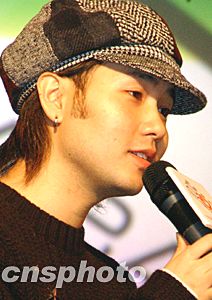 香港歌手葉文輝十二月二十八日在香港舉行的“亞洲游戲展2003”上,為參觀者及歌迷演唱。作者:錢興強(qiáng)