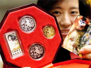 這3枚猴年紀(jì)念幣分別是幣值250新元(下同)金幣,10元銀幣和銅鎳幣。整個配套售價1633元。此外,造幣廠也將陳文希的猿猴圖制成大小不一的金、銀章,售價從28元到248元不等。