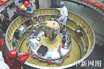 圖:"長征二號丙"改進(jìn)型運載火箭二級、上面級對接平臺安裝