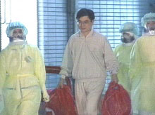 中新網(wǎng)12月30日電 據(jù)臺灣媒體報道,臺灣今年冬季首位感染SARS的詹姓中校,今天(30日)凌晨零時五十分許,在兩名身著隔離衣的護(hù)士陪同下,悄悄步出臺北和平醫(yī)院,隨后立即由家人駕車接離,結(jié)束其十三天的醫(yī)療。