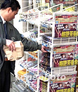 十二月三十日凌晨,香港藝人梅艷芳逝世,清晨許多港人紛紛購報紙了解梅艷芳逝世詳情。中新社記者:錢興強(qiáng)