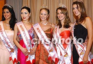 日前,在馬來西亞首都吉隆坡舉行的第八屆國際旅游小姐選美總決賽上共評(píng)出五項(xiàng)冠軍,大賽組委會(huì)主席向記者闡明,國際旅游小姐選美賽不同其它選美賽事,組委會(huì)現(xiàn)持有五項(xiàng)馬來西亞旅游部授權(quán)的大賽執(zhí)照,是次大賽由評(píng)判團(tuán)評(píng)出的有五項(xiàng)冠軍桂冠,南非的選手ANGELA BECK獲國際旅游小姐冠軍、希臘小姐獲國際旅游年度皇后冠軍、中國選手邢會(huì)原獲世界洲際小姐冠軍、阿根廷選手獲夢(mèng)幻小姐冠軍、捷克選手獲國際名城小姐冠軍。而且經(jīng)授權(quán),國際旅游年度皇后和國際名城小姐兩項(xiàng)賽事,已確定2004年分別在中國舉行。曾于2001年參加該賽的中國佳麗閻巍獲得夢(mèng)幻小姐冠軍,2002年中國佳麗殷子獲得國際旅游年度皇后桂冠。圖為大賽評(píng)選出的獲得不同項(xiàng)目的五名冠軍得主。中新社記者:錢興強(qiáng)