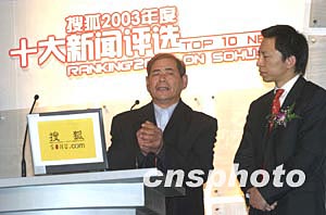 一月六日晚,被評為2003年度搜狐網(wǎng)新聞人物的孫志剛,其父專程來京替子領(lǐng)獎(jiǎng),在現(xiàn)場他熱淚盈眶,鞠躬作揖,感激將《孫志剛事件》公布于眾并主持正義的新聞媒體。中新社記者:史利