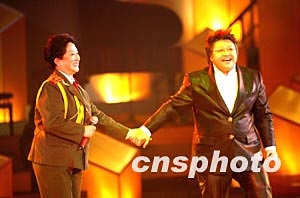 中國文聯(lián)十一日在北京舉辦《百花迎春--中國文學藝術(shù)界2004春節(jié)大聯(lián)歡》活動,著名歌手韓紅和母親雍西同臺演唱《翻身農(nóng)奴把歌唱》。中新社記者:王瑤