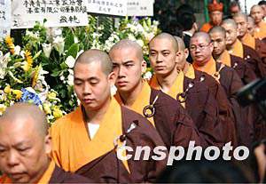 一代歌后梅艷芳元月十二日在香港殯儀館舉殯,圖為眾僧侶參加梅艷芳舉殯。作者:錢興強
