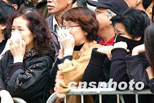 中新社香港一月十二日電(記者曉萍)患癌癥去世的香港著名藝人梅艷芳今日舉殯。大殮儀式于上午十一時(shí)開始,隨后布滿白色鮮花的靈車將靈柩送往柴灣哥連臣角火葬場火化。逾千名梅艷芳的歌、影迷在北角殯儀館外夾道送別,場面哀痛。