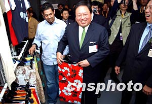 香港民政事務局局長何志平,1月13日在“香港時裝節(jié)”上參觀展場時興高采烈。