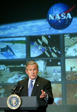 布什當(dāng)天在此間的美國(guó)國(guó)家航空航天局總部宣布這個(gè)計(jì)劃時(shí)稱,過去三十年,人類在太空的足跡沒有超過三百八十六英里,只相當(dāng)于華盛頓到波士頓的距離,F(xiàn)在是美國(guó)邁出下一步的時(shí)候了。