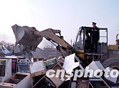 春節(jié)前夕,北京警方將收繳的4000余臺賭博機集中銷毀。作者:韓金星
