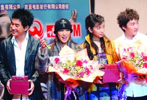 而任賢齊則是當(dāng)天得到女FANS歡呼聲最多的明星。雖然衣著普通,但是小齊一開口,還是不改幽默本色。他說:“這是我第一次拍動(dòng)作時(shí)裝片,以前古裝動(dòng)作片拍多了,動(dòng)不動(dòng)就會(huì)出來劍指。這次我在片中有扮女人的戲分,在里面我不僅要穿裙子、還要穿高跟鞋。楊紫瓊就教我怎么把裙子穿得好看。我在戲里的功夫比她稍微弱一點(diǎn)點(diǎn),但還是要被她打,幸好胸部有襯墊,被打也不痛。另外我要感謝導(dǎo)演,給了我一頭金色假發(fā),讓我有機(jī)會(huì)扮洋妞。不過卻有一個(gè)不好的結(jié)果,我晚上上廁所的時(shí)候差點(diǎn)不知道該上男廁還是女廁!(記者陳弋弋)