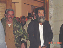上述照片看似是由美國(guó)軍方內(nèi)部或是與美軍關(guān)系密切的人在美軍抓到薩達(dá)姆時(shí)拍攝的。其中另一張照片顯示,當(dāng)薩達(dá)姆被帶往他在巴格達(dá)的一座皇宮、現(xiàn)為美軍總部時(shí)數(shù)十名軍方人員圍在薩達(dá)姆身邊。