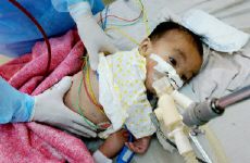 圖:越南一名患禽流感的兒童在醫(yī)院進行搶救