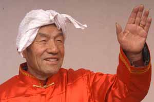 最老的歌手大名柴根,來自陜西府谷,今年已八十二歲高齡。家里四世同堂,兒子六十多歲,重孫都十幾歲了。老柴根不僅愛唱,而且現(xiàn)編現(xiàn)唱,什么都可以成為他唱歌的內(nèi)容,整整唱了一輩子?傻搅穗娨暸_,一下子面對這么多臺攝象機,老人有點不知所措了,他看到頭上吊著一臺攝像機,于是就盯著那個鏡頭唱,那份認真專注的勁頭,十分讓人感動。