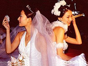 春節(jié)前夕,兩名身著婚紗的少女在重慶市舉行的“金夫人模特”攝影比賽中,合作擺出動人"甫士",展示嫵媚風(fēng)韻。作者:周會